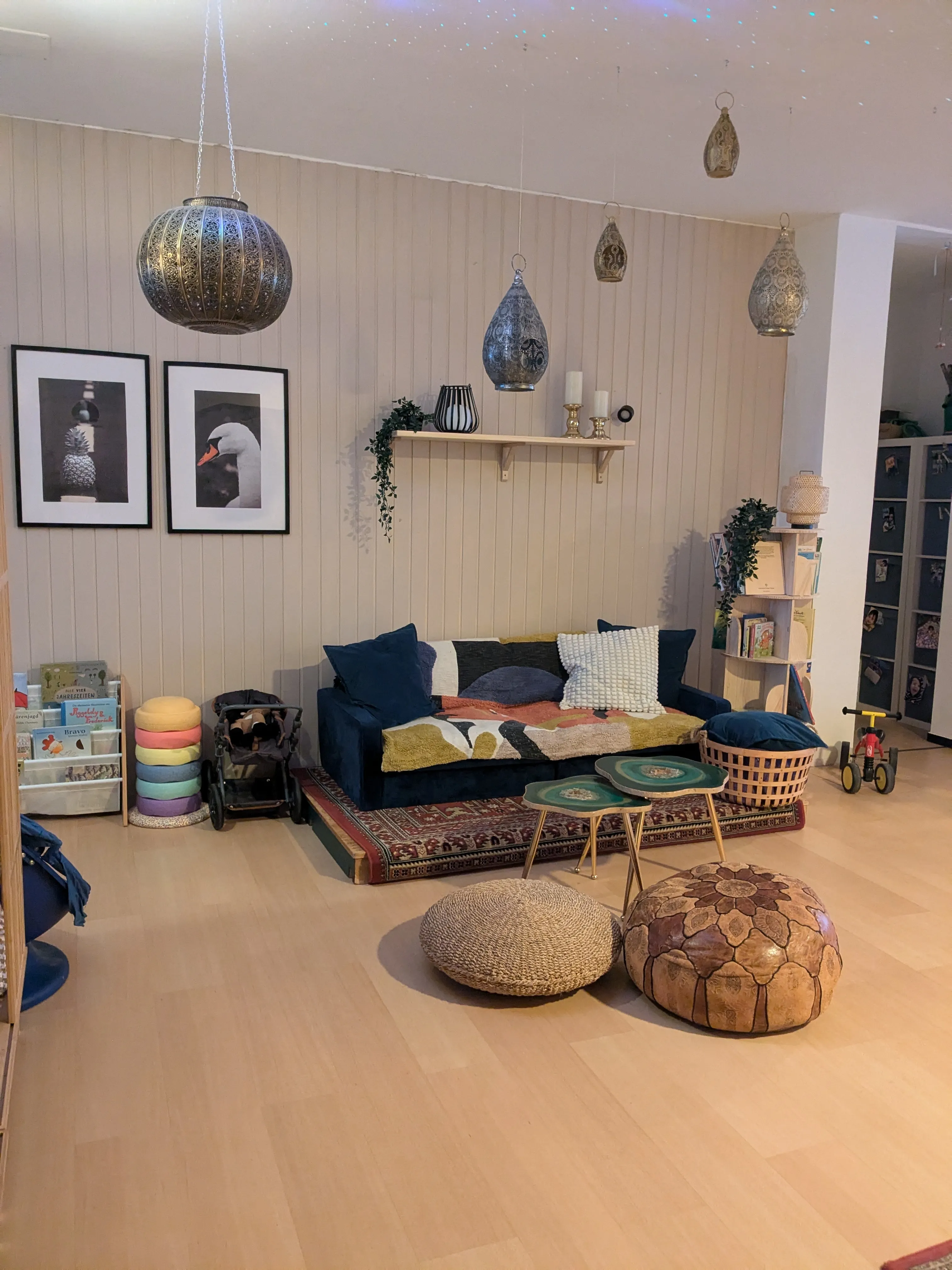 KLEINER HINWEIS: Wir empfehlen Ihnen, Hausschuhe für sich und die Kinder mitzubringen, da der Boden oft sehr kalt ist. Außerdem empfiehlt es sich, für die Kinder Ersatzkleidung dabei zu haben, da wir den Sand feucht halten müssen, damit Sandkuchen und Burgen gebaut werden können.