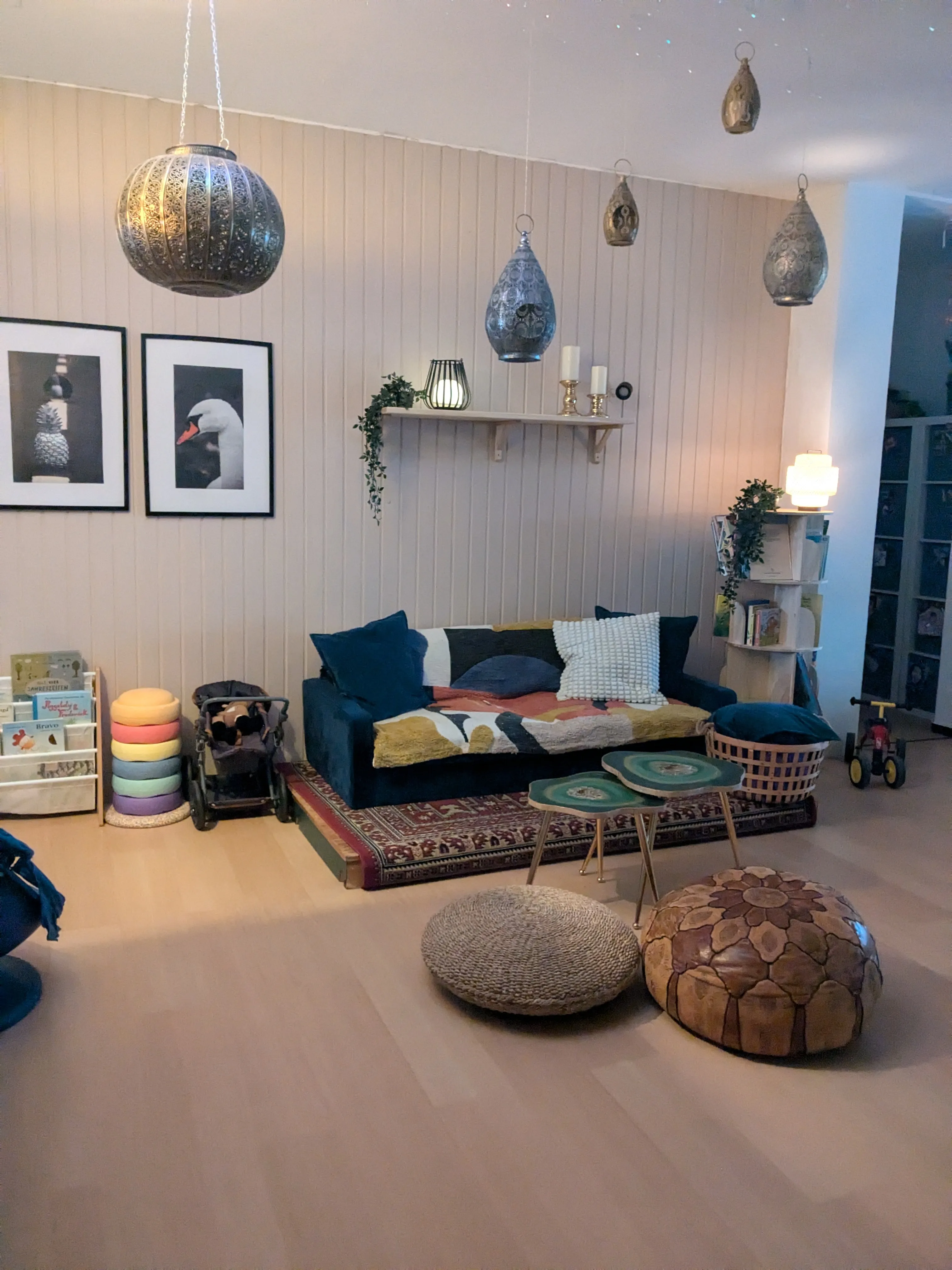 KLEINER HINWEIS: Wir empfehlen Ihnen, Hausschuhe für sich und die Kinder mitzubringen, da der Boden oft sehr kalt ist. Außerdem empfiehlt es sich, für die Kinder Ersatzkleidung dabei zu haben, da wir den Sand feucht halten müssen, damit Sandkuchen und Burgen gebaut werden können.